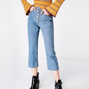 lrud旗舰店 (直达淘宝APP):推荐他家的夏季高腰纽扣撕边阔腿九分牛仔裤。没有人跟我一样异常的喜欢阔腿裤,可以掩饰腿部的不足,特别是这种直筒的阔腿裤,上身显腿直,小粗腿神马的都走开!简单的单排纽扣拉链的闭合很特别,裤脚是毛边的设计 hin有个性。面料是牛仔的,所以是没有弹力的。